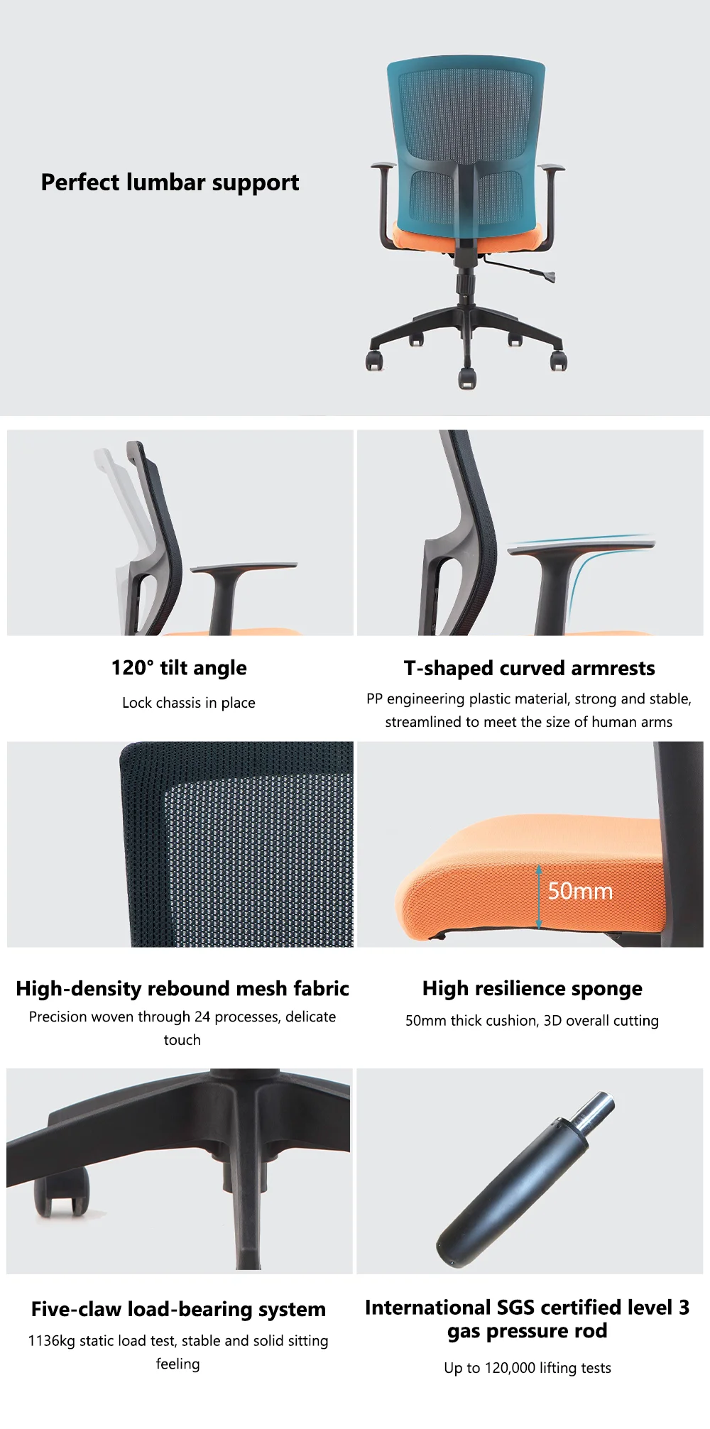 | Size | 630Wx550Dx(930-1030)H(Middle back); 615W×545D×935H(Bow shaped bracket) |